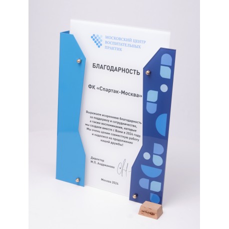 Входит в цену: УФ-печать на двух деталях плакетки.